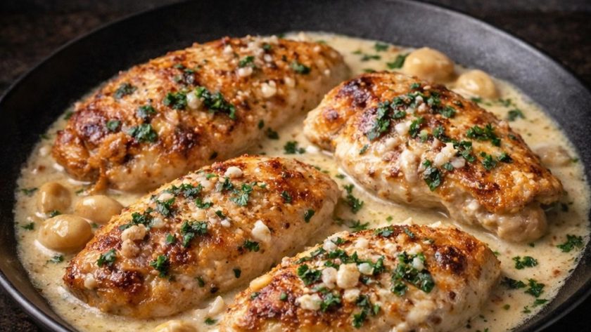 Creamy Garlic Chicken is a rich and comforting dish made with juicy chicken breasts cooked in a flavorful garlic cream sauce. This easy one-pan recipe is perfect for busy weeknights and tastes like a restaurant-quality meal. The combination of butter, garlic, cream, and parmesan cheese creates a smooth and delicious sauce that pairs perfectly with rice, pasta, or mashed potatoes.