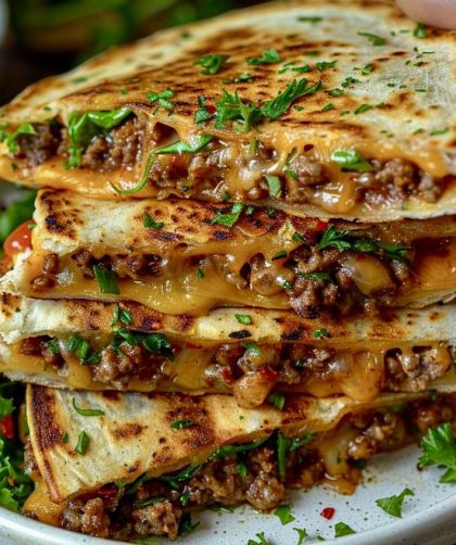 Savory Beef and Cheese Quesadillas! Packed with seasoned ground beef and melted cheddar or Monterey Jack cheese, wrapped in crispy flour tortillas. Perfect for a …