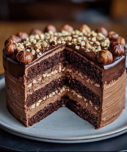 This Decadent Chocolate Hazelnut Layer Cake is a luxurious treat featuring moist chocolate cake layers, a creamy hazelnut filling, and a glossy chocolate ganache, finished …