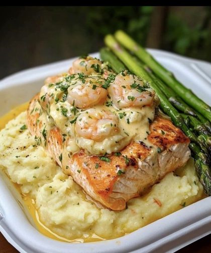 Elevate your dinner with this exquisite Seafood Stuffed Salmon, featuring succulent shrimp and crab filling, served alongside creamy Parmesan mashed potatoes and tender asparagus. Perfect …