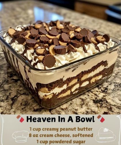 Indulge in this Heavenly Peanut Butter Cup Delight! Layers of creamy peanut butter and rich chocolate sit atop a crunchy cookie base, crowned with fluffy …
