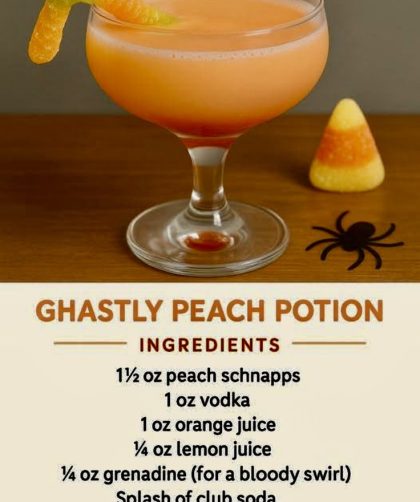 The Ghastly Peach Potion is a spooky, fruity cocktail perfect for Halloween celebrations. With its vibrant orange color, bloody swirl, and playful gummy worm garnish, …