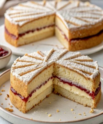 A timeless British teatime treasureβtwo feather-light vanilla sponge layers sandwich a silky vanilla buttercream and vibrant raspberry jam, all crowned with a delicate dusting of …