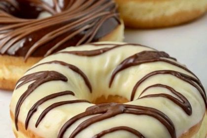 This Decadent Glazed Donut Trio features fluffy, golden donuts topped with three irresistible glazes: rich chocolate with white icing swirls, creamy white glaze with chocolate …