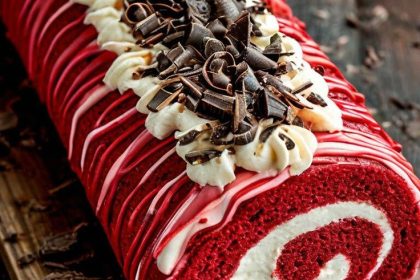 This Red Velvet Roll Cake is a delightful dessert featuring a moist, vibrant red sponge swirled with creamy filling, topped with rich chocolate shavings. Ingredients …