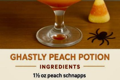 The Ghastly Peach Potion is a spooky, fruity cocktail perfect for Halloween celebrations. With its vibrant orange color, bloody swirl, and playful gummy worm garnish, …