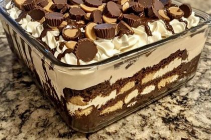 Indulge in this Heavenly Peanut Butter Cup Delight! Layers of creamy peanut butter and rich chocolate sit atop a crunchy cookie base, crowned with fluffy …