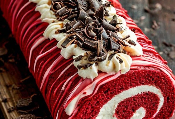 This Red Velvet Roll Cake is a delightful dessert featuring a moist, vibrant red sponge swirled with creamy filling, topped with rich chocolate shavings. Ingredients …